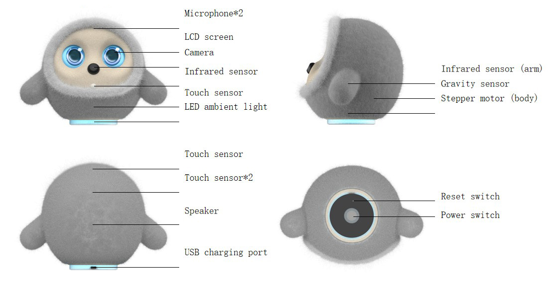 అందమైన రోబోట్ పెంపుడు జంతువు దాని స్వంత వ్యక్తిత్వం మరియు భావోద్వేగాలను కలిగి ఉంది, పిల్లల వలె, వినియోగదారులకు అందిస్తుంది