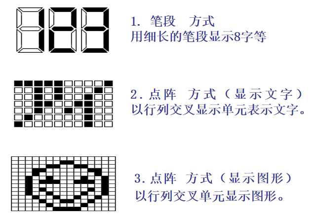 సెగ్మెంట్ డిస్ప్లేలు:వారి సాధారణ, తక్కువ-ధర లక్షణాలతో, వారు సంఖ్యలు, అక్షరాలు లేదా సాధారణ చిహ్నాలను ప్రదర్శించడంలో ప్రత్యేకత కలిగి ఉంటారు. మీటరింగ్ సాధనాలు మరియు ప్రాథమిక గృహోపకరణాలు వంటి పరికరాల కోసం అవి ఒక క్లాసిక్ ఎంపిక.