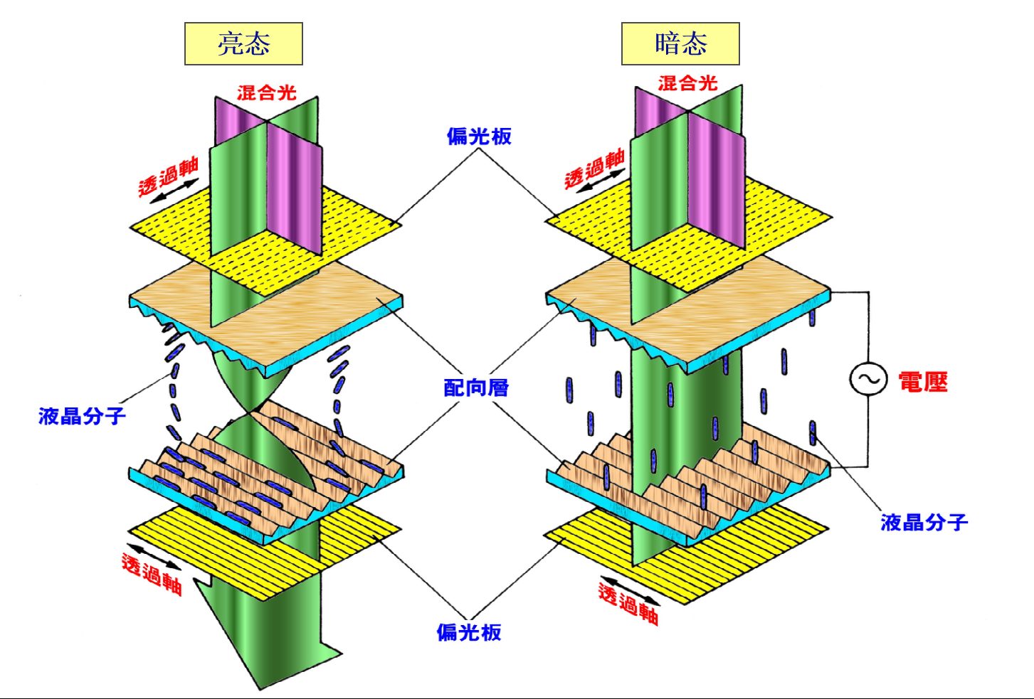 ప్రకాశవంతమైన స్థితిలో (నాన్-డిస్ప్లే స్టేట్), లిక్విడ్ క్రిస్టల్ అణువులు సాధారణ 90-డిగ్రీల వక్రీకృత అమరికను నిర్వహిస్తాయి. ఫ్రంట్ పోలరైజర్ యొక్క ప్రసార అక్షం గుండా వెళ్ళిన తర్వాత సంఘటన కాంతి ధ్రువణమవుతుంది. ఈ ధ్రువణ కాంతి లిక్విడ్ క్రిస్టల్ పొర గుండా వెళుతున్నప్పుడు, దాని ధ్రువణ దిశ పరమాణు ట్విస్ట్ నిర్మాణంతో పాటు 90 డిగ్రీలు తిరుగుతుంది, వెనుక ధ్రువణానికి సంబంధించిన ఆప్టికల్ యాక్సిస్తో సమలేఖనం చేయబడి ప్రకాశవంతమైన స్థితిని ఏర్పరుస్తుంది.